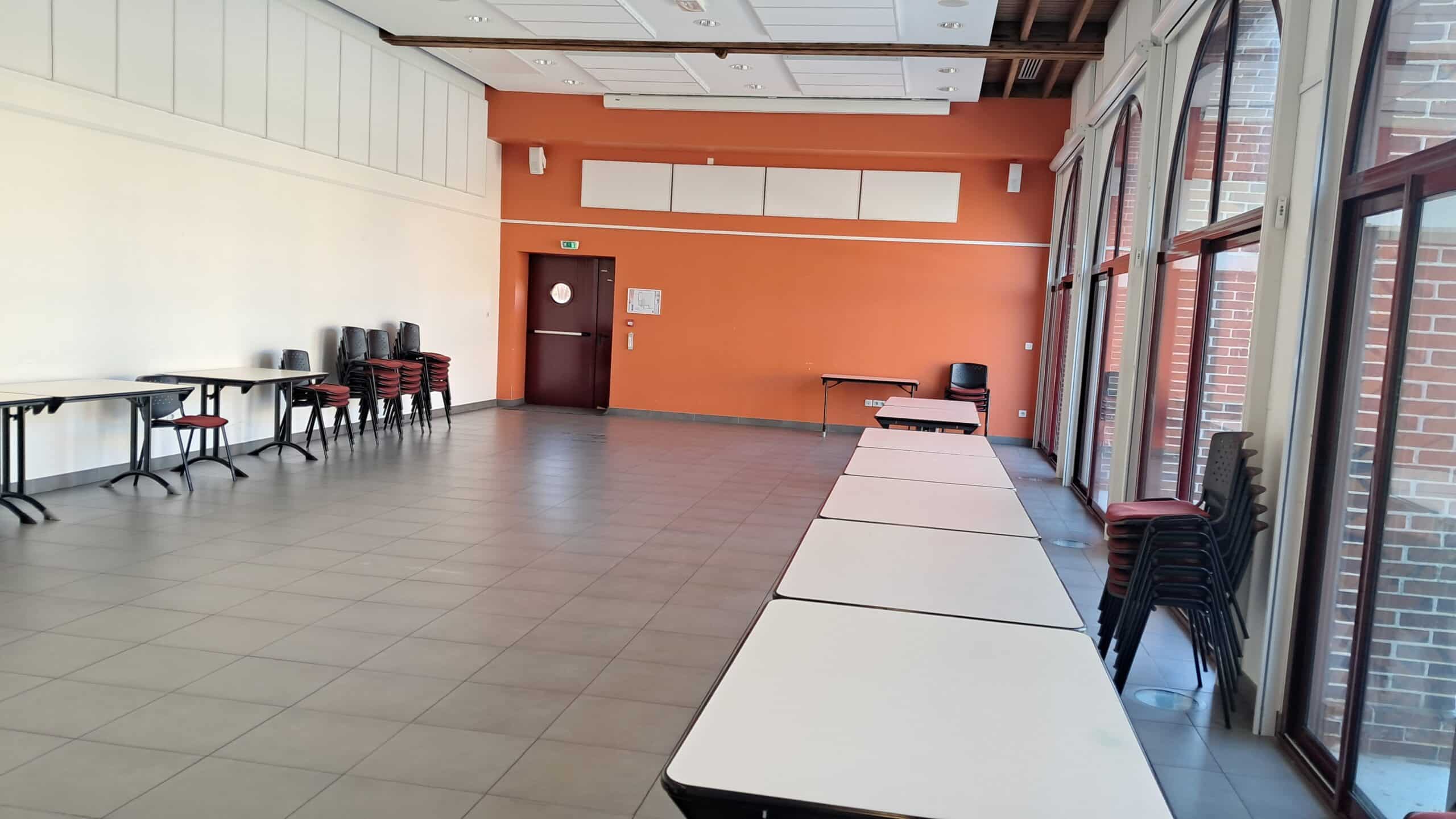 Cette salle bien équipée au design contemporain est très lumineuse et offre une  belle vue sur l’Espace E. Valladon. L’office possède tout l’équipement nécessaire pour vous permettre d’organiser votre réception. Du simple apéritif au repas festif, toutes les solutions envisagées sont réalisables. Sur simple demande, une visite est également possible.